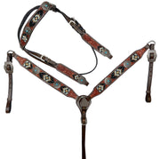 GATOR INLAY WITH TURQUOISE & COPPER BEADING LEATHER TACK SET