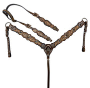TOOLED FLORAL AND BUCKSTITCH LEATHER TACK SET