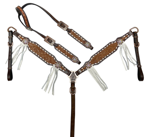 TWO TONE TOOLED LEATHER TACK SET